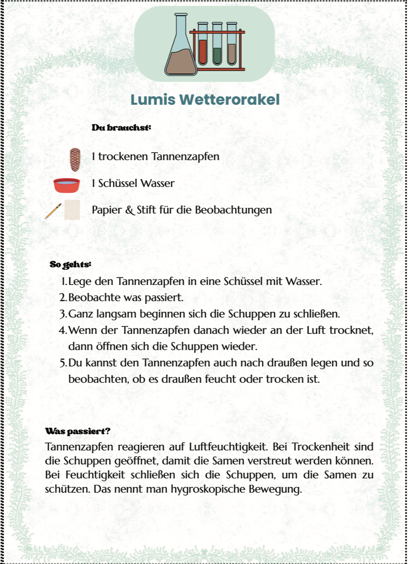 Jeden Tag steckt Lumi eine kleines Experiment oder ein Bastelprojekt in ihr Wichteltürchen.